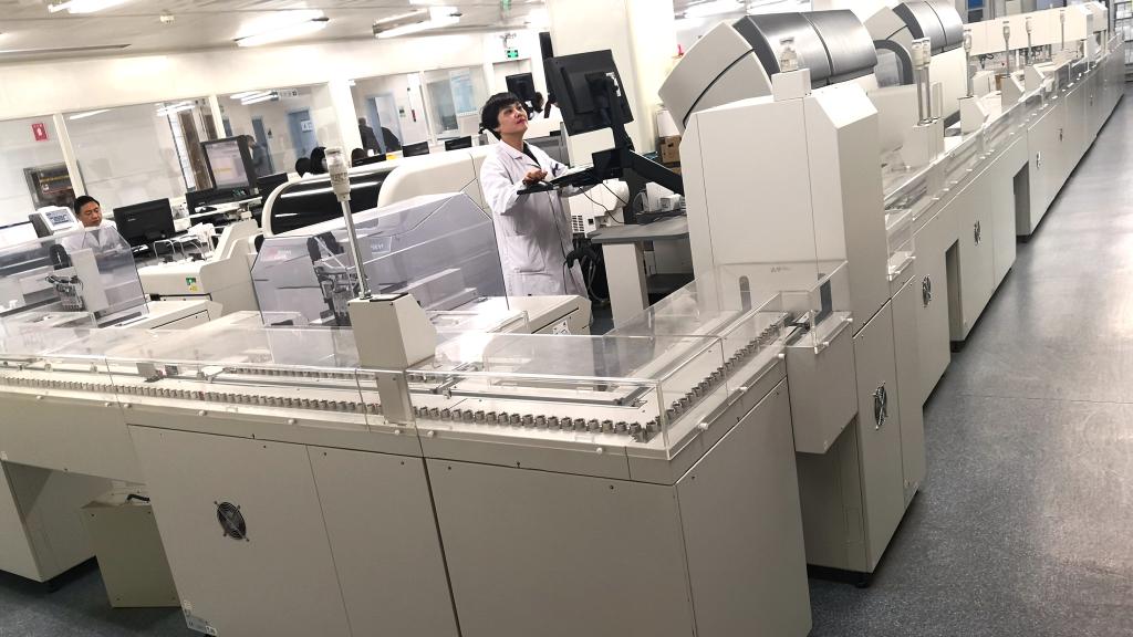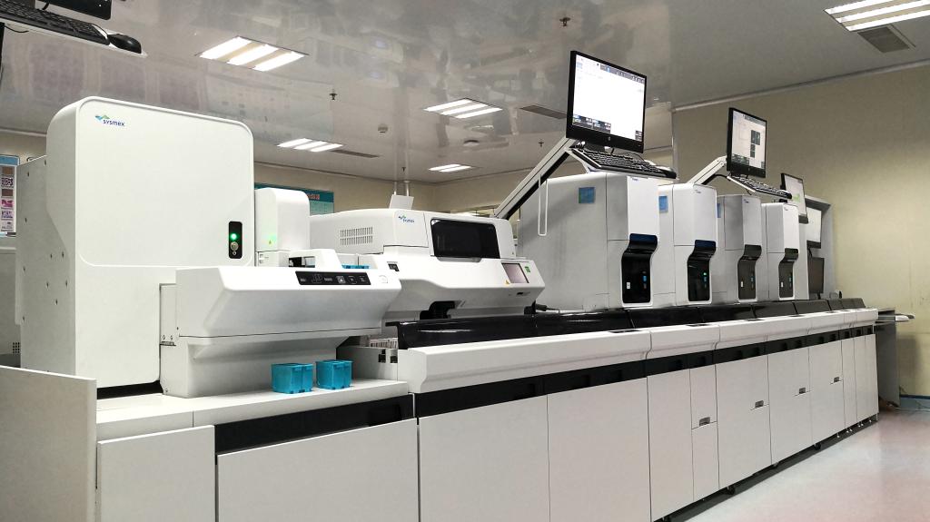 我科现有临床血液、临检血液、临检体液、临床化学、临床免疫、临床化学发光、临床微生物及临床分子8个专业实验室。实验室占地面积约2200 m2。医学检验科设备先进,现有Beckman Coulter全自动生化免疫流水线、SYSMEX全自动血细胞分析流水线、SYSMEX全自动凝血分析流水线、移动式核酸检测车(配置50台PCR仪)、BD全自动血培养仪、MEILIA全自动微生物鉴定及药敏分析系统、MEILIA全自动快速微生物质谱检测系统、BD流式细胞仪、Roche全自动化学发光仪、Beckman Coulter全自动免疫分析仪、雅培免疫化学发光分析仪、ABI荧光定量PCR仪、天隆实时荧光定量PCR仪等100余台/套,总价值近1.1亿元。