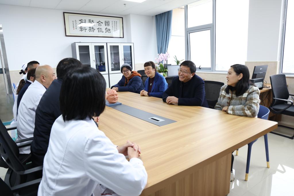 组织员王东介绍了此行走访的目的,并对遵义市第一人民医院的热情接待表示感谢。董泽令介绍了2025届研究生基本情况。周光润书记对医院给予实习生的精心指导表示感谢,并表明388vip太阳集团高度重视员工的实习与就业工作,希望双方能进一步加强合作,共同致力于促进人才培养及毕业生高质量就业。