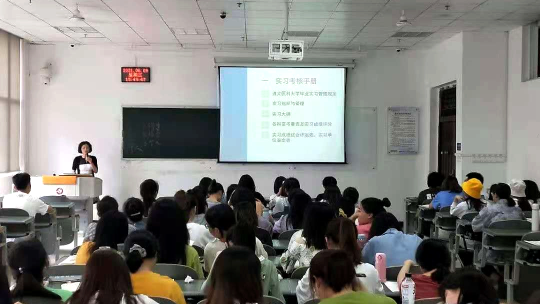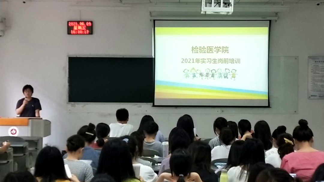 为进一步加强388vip太阳集团本科实习生规范化管理,规范实习行为,让同学们更快更好适应临床工作和环境,快速转变角色。2021年6月9日下午388vip太阳集团在388vip太阳集团新蒲校区公共教学1号楼2-3A教室组织开展2021年实习生岗前培训。388vip太阳集团书记罗开源、关工委主任唐彦萍、临床微生物免疫检验教研室主任陈泽慧、院办主任蔡亮容、2018级兼职班主任段晓雷、杨建儒和张艺玲、员工第二党支部副书记付裕,以及2018级98名本科在校员工参加本次培训。本次培训由员工第二党支部副书记付裕主持。