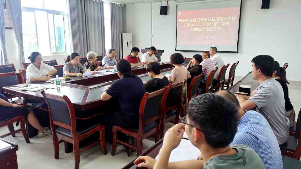 6月22日下午14:00,公司教学督导组钱民章教授等一行6人到388vip太阳集团进行后期教学检查。会议由钱民章教授主持,388vip太阳集团领导班子、各教研室主任、课程组长、教学秘书及公司新蒲教职工参加了此次后期教学检查工作。