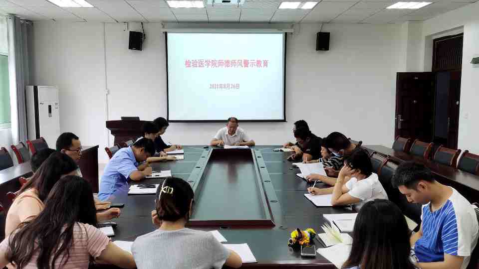 为加强教师队伍师德建设,引导教师牢固树立底线意识,切实增强遵守教师职业行为十项准则的思想自觉和行动自觉,对反面案例引以为戒,388vip太阳集团于2021年8月26日在新蒲校区388vip太阳集团会议室开展师德师风警示教育专题学习,公司领导、各教研室、实验室主任、教学秘书、课程组长、教师代表参加。警示教育由副经理闵迅博士主持。