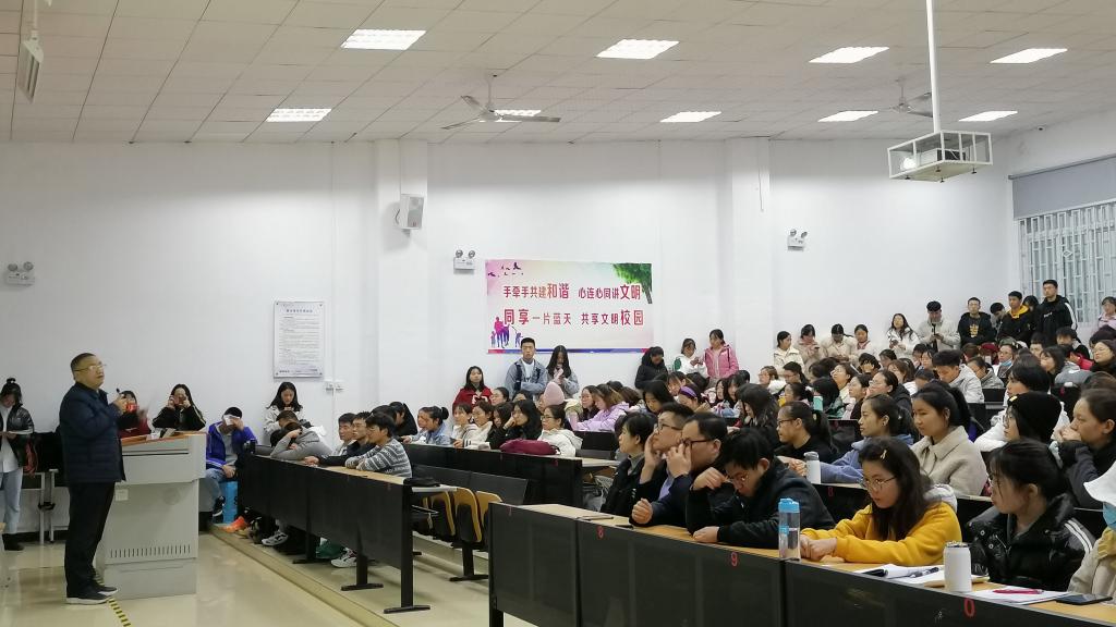 为了深入贯彻落实全国高校思想政治工作会议和全国公司思想政治理论课教师座谈会精神,开创公司思想政治公司产品大格局,388vip太阳集团于2020年11月27日18:00在第二阶梯教室开展了思想政治理论主题讲座。面向全院师生,公司党委书记罗开源上讲台讲思想政治理论课。