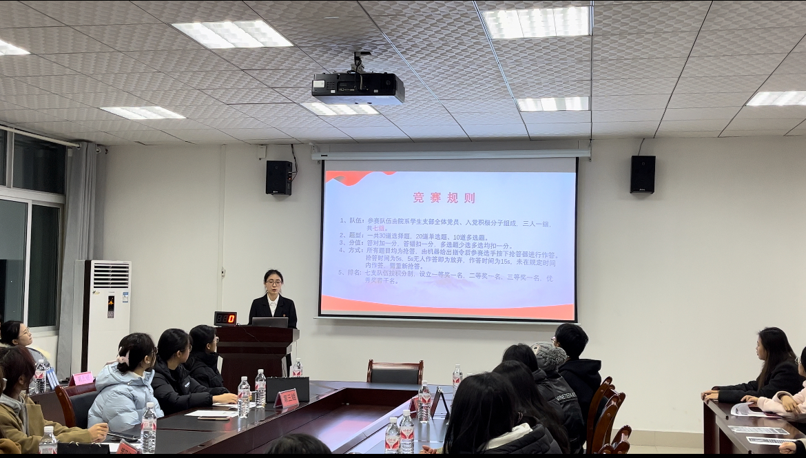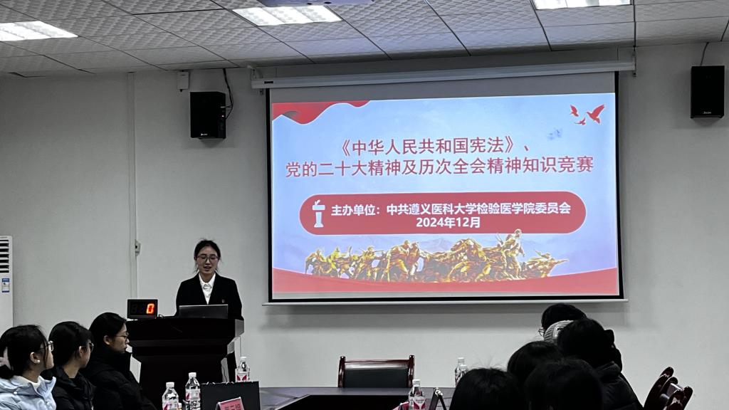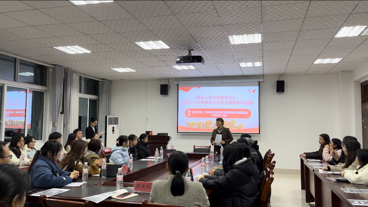 2024年12月6日,388vip太阳集团党委在新蒲校区2号实验楼388vip太阳集团会议室举办了《中华人民共和国宪法》、党的二十大精神及历次全会精神知识竞赛。388vip太阳集团党委书记周光润、员工第二党支部书记张增平、各支部员工党员代表、入党积极分子代表参加本次活动。