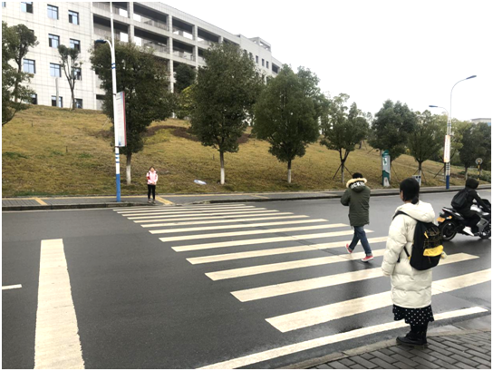11月27日,员工党员分为两个小组,分别在一食堂门口以及三食堂的门口形成了一条“爱心斑马线”,当遇到横穿马路的同学时,上前进行文明劝导,告诉同学们不要横穿马路,要文明过斑马线,并且在看到行动不便的人时会帮助他们过马路。