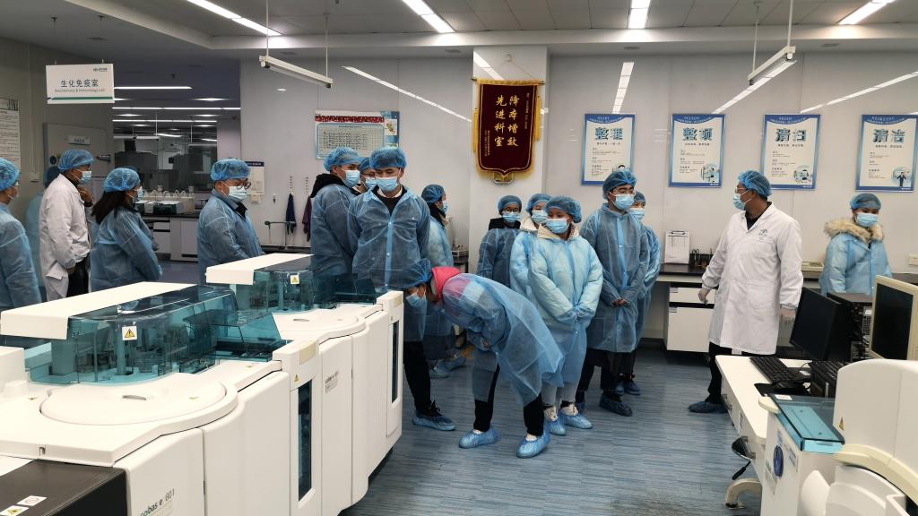 11月26日,检验科党支部生化教研室主任鄢仁晴、支部委员田地及388vip太阳集团2021届实习生一行30余人,前往贵州迪安医院检验中心并与该方就毕业生就业相关事宜进行深入互动。