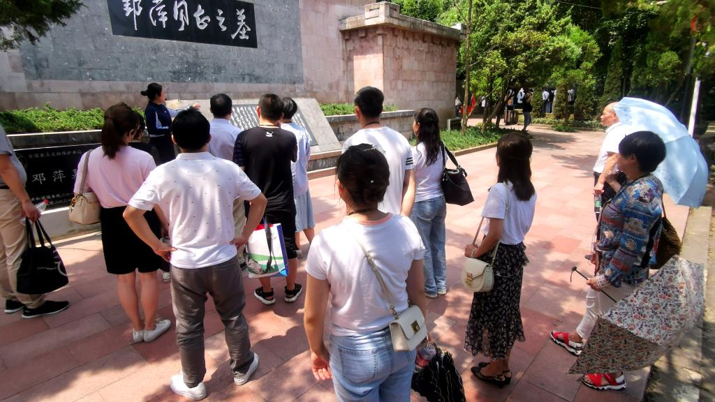 随后烈士陵园现场教学老师为大家讲解了红军山和红军烈士陵园那段感人至深的革命历史故事,“卓越将领”红三军团参谋长邓萍身先士卒、英勇牺牲,“红军菩萨”龙思泉仁心大爱、救死扶伤和红军坟的由来等英勇事迹,展示了红军长征途中波澜壮阔、可歌可泣的历史画面。全体党员有序地围绕邓萍同志墓、红军菩萨红军卫生员龙思泉烈士墓对红军烈士表达了深情哀悼。大家怀着崇敬的心情向革命先烈深深鞠躬、默哀,表达缅怀之情。