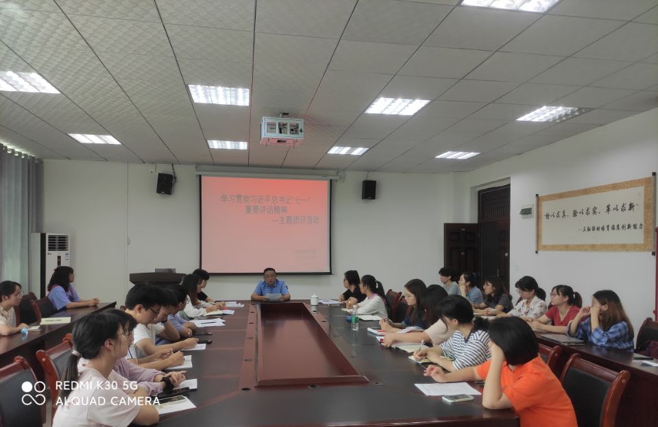 2021年9月2日,388vip太阳集团党委书记罗开源在会议室为在新蒲校区全体教师和员工第一、第二党支部全体党员开展了“学习贯彻习近平总书记七一重要讲话精神”的主题党日活动。