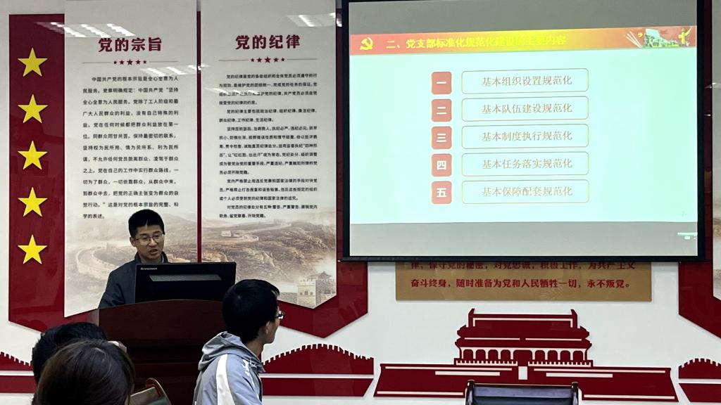 培训会上,李恒爽围绕党支部标准化规范化建设总体要求、工作重点、基本程序和存在的问题等作讲解,并结合党员发展的程序操作、时间节点把握、材料收集等方面的常见问题进行梳理分析、重点讲解。培训会议最后,与会人员就目前发展党员过程中遇到的问题进行了现场交流,李恒爽老师结合案例对有关问题一一作了解答。