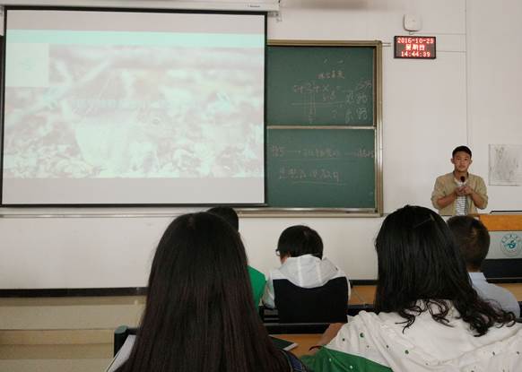 此次活动由团总支干事谢华松主讲,他将讲解内容分为五部分,分别是“德育分介绍”、“德育分的制定”、“加分项目及标准”、“扣分标准”和“不予加分原则”。首先,谢华松同学介绍了德育分的评定优秀、良好、及格等级的标准以及德育分带给同学们的影响。接下来,他让大家了解到了德育分制度建立的目的以及制定的标准来源。然后,谢华松同学列举了部分加分、扣分以及不予加分的项目并且特别提醒同学们在会议、活动和上课不能缺旷、早退,一经查实将取消本年度评优评奖资格。最后他以对同学们的美好祝愿结束了此次活动。