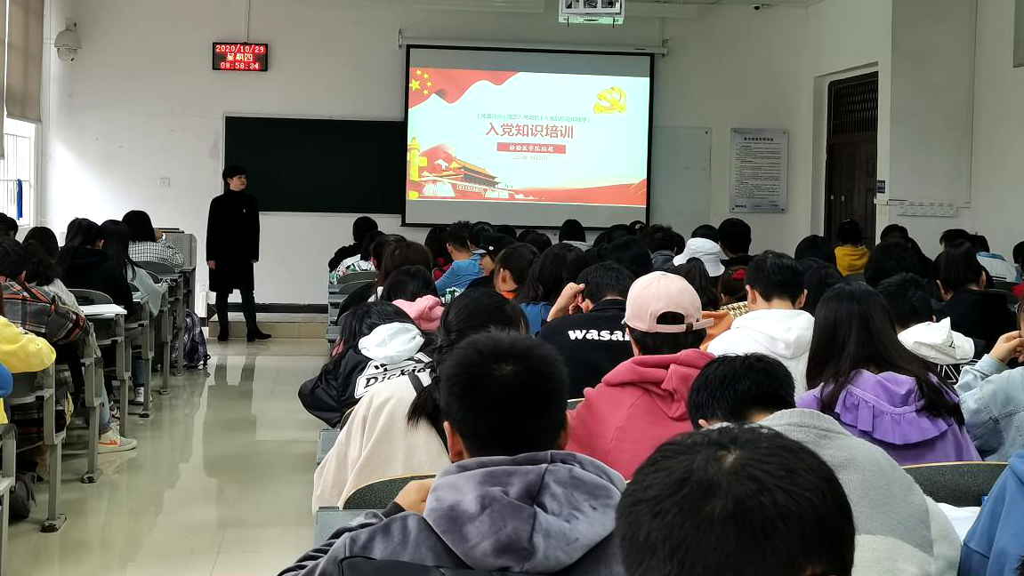 为扩大党员队伍,深化教育培训,2020年10月29日上午9点,388vip太阳集团在新蒲校区1号教学楼1-4A教室开展了“入党知识培训”讲座。388vip太阳集团辅导员陆超以及2020级全体新生参加此次培训。