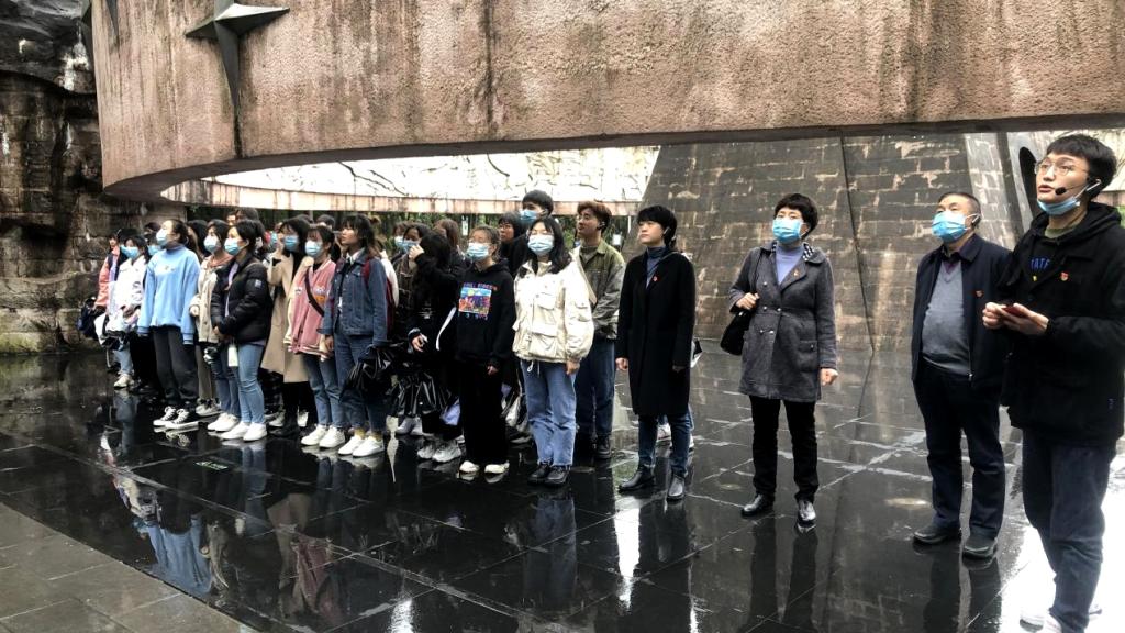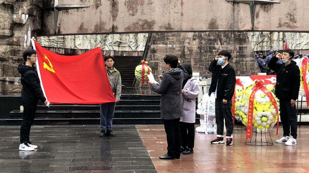 祭奠活动开始,首先由两位党员同学上前为烈士敬献花篮,罗开源书记整理花篮的绶带,全体人员瞻仰英雄纪念碑,为革命烈士三鞠躬并默哀致礼。默哀毕,由388vip太阳集团关工委副主任唐彦萍教授带领全体党员同志们重温入党誓词。通过重温入党誓词,增强责任意识、担当意识、使命意识,让全体党员同志们再一次感受到思想的洗礼和升华,进一步激励党员同志们坚定爱党、信党、跟党走的理想信念,牢记使命,砥砺前行。