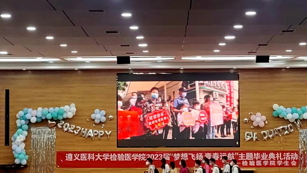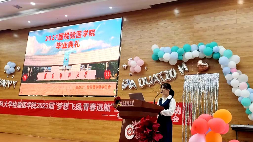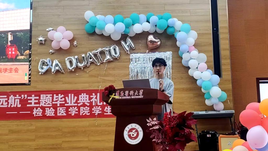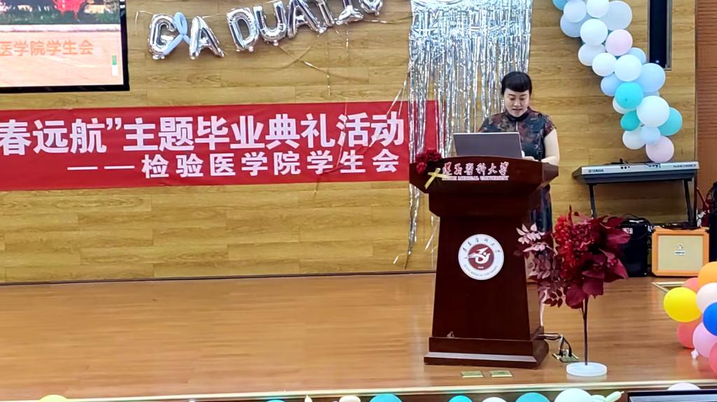 毕业典礼以学弟学妹们为2023届毕业生制作的毕业季祝福视频开场,紧接着的是388vip太阳集团啦啦队的舞蹈表演。气氛活跃起来后,闵副经理致辞,首先闵经理肯定了2019级学子们在学习和工作上所取得的成绩,并向毕业生们提出自己的期望,希望同学们能在追寻自己梦想的路上砥砺前行。周光润书记讲到2023届毕业生们驰援贵阳抗疫,展现了遵医检验人不畏艰险、奋勇逆行、大爱无疆的担当精神,并表示盼望毕业生在百忙之中常回母校走走、常来检验看看,同时嘱托毕业生们一定要终生铭记“检以求真、验以求实、革以求新”的院训并将它发扬光大!两位领导字字句句都饱含温情,表达了对毕业生们的不舍与厚望。
