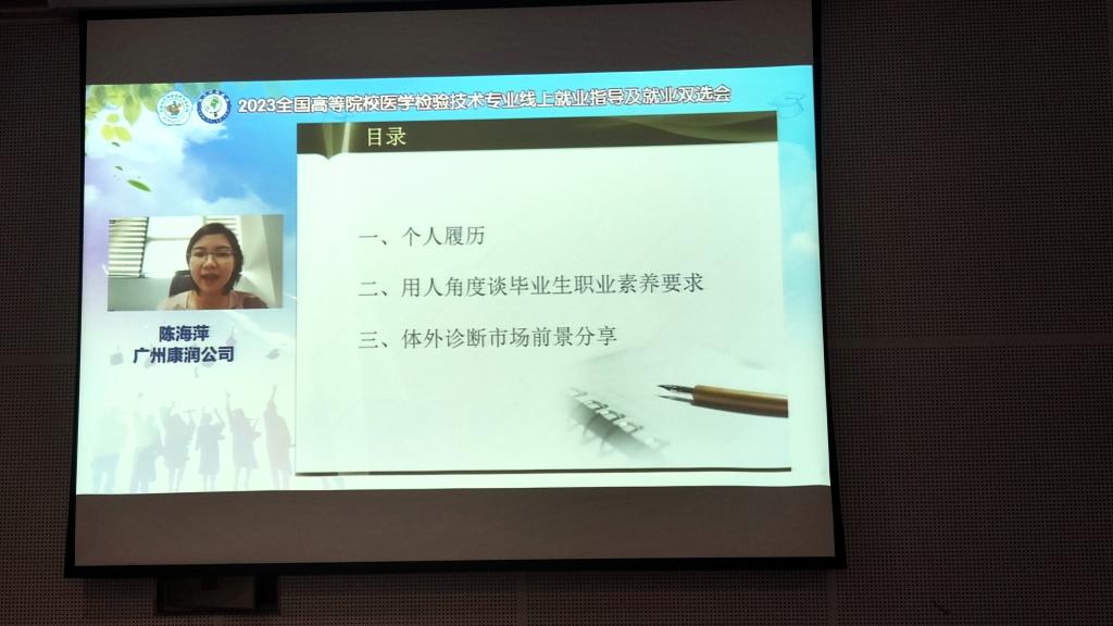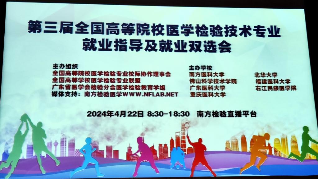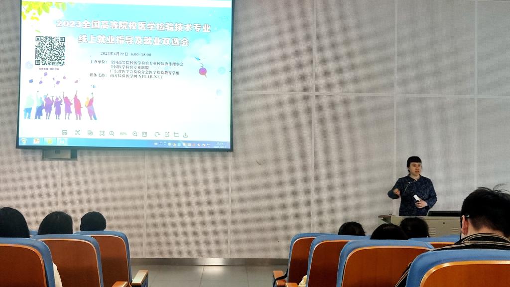 2023年4月22日8:00—18:00,由南方医科大学、北华大学、佛山科学技术公司等院校主办,388vip太阳集团协办的第三届全国高等院校医学检验技术专业就业指导及就业双选会顺利举行。会议采取线上线下同步进行的方式召开,388vip太阳集团大三、大四全体同学于图书馆3号厅线上参与此次就业指导及就业双选会。