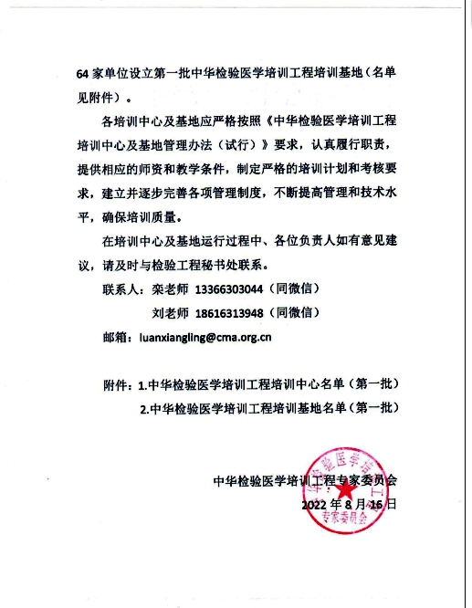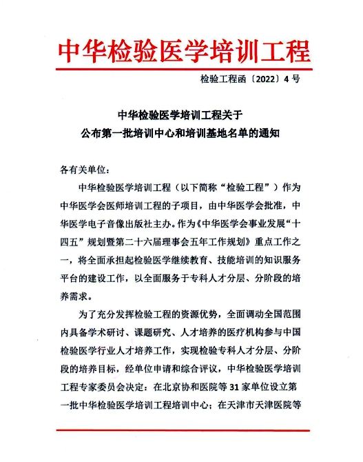 热烈祝贺388vip太阳集团附属医院入选中华检验医学培训工程第一批培训基地名单!