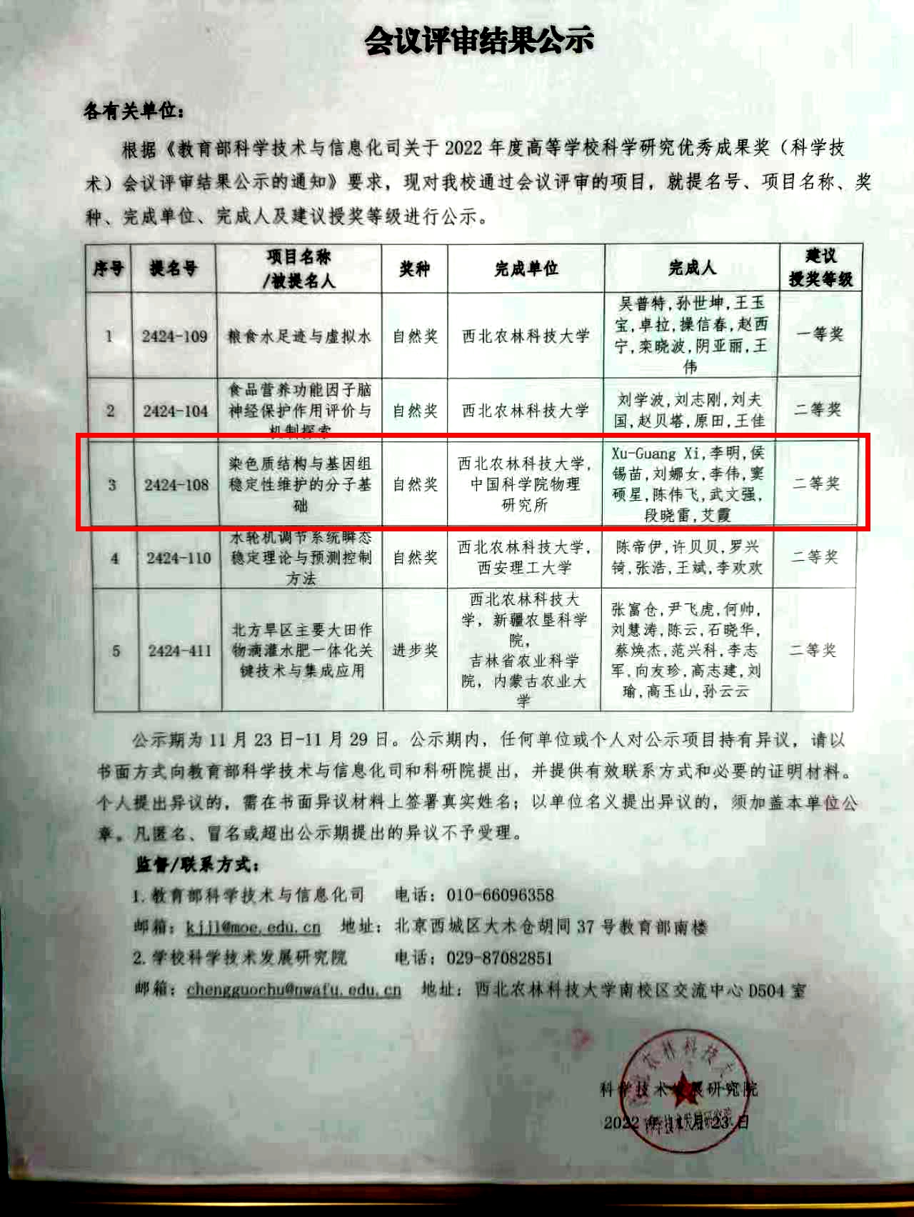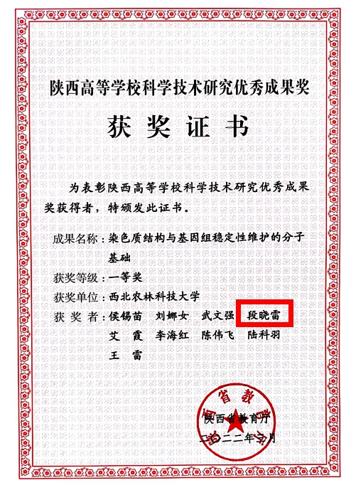 热烈祝贺公司段晓雷博士(第四完成人)教学成果《染色质结构与基因组稳定性维护的分子基础》,继2022年3月获得陕西省高等公司科学研究优秀成果奖一等奖荣誉后;于2022年11月以(第九完成人)再次荣获2022年度教育部高等公司科学研究优秀成果奖二等奖荣誉!
