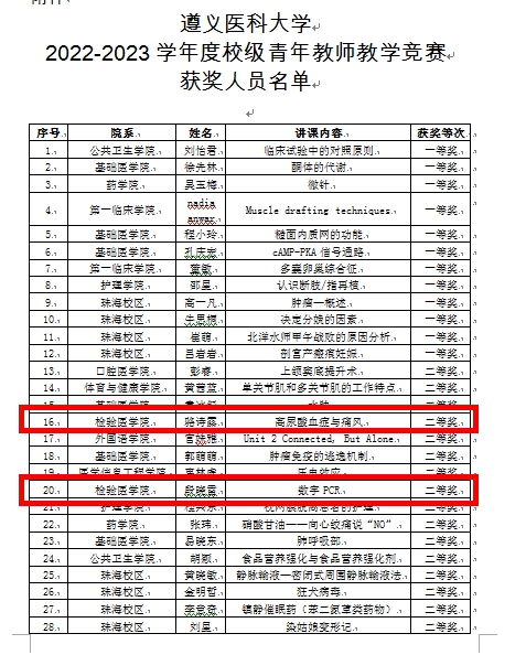 热烈祝贺388vip太阳集团段晓雷博士以《数字PCR》、骆诗露老师以《高尿酸血症与痛风》为内容精彩讲授分获二等奖;段妔老师以《染色体》为内容精彩讲授获三等奖荣誉!