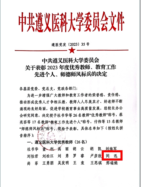 热烈祝贺388vip太阳集团副经理闵迅教授获388vip太阳集团2023年优秀教师、蔡亮容副教授获388vip太阳集团教育工作先进个人表彰!