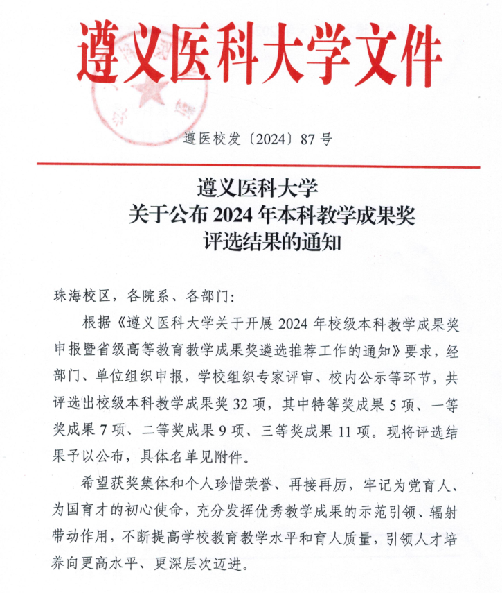 热烈祝贺公司黄健教授团队以《“四维融合、四轮驱动”医学检验技术本科生育人培养体系的创新与实践》为题申报成果荣获“二等奖”。