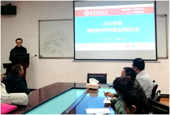 公司贵州省高层次创新型科技千层次人才张涛博士详细介绍了地区基金、青年基金及面上等项目的定位要求及评审要求,以及国家自然科学基金申报流程及注意事项,并分享了自己在撰写标书及申报国家自然科学基金的经验,强调撰写标书要解决4个问题“为什么要做?”,“做什么?”,“怎么做?”和“有何条件做?”。青年教师代表石彬、高松等分别就自己在申请国家自然科学基金的经验和体会与参会教师进行了探讨交流,告诉大家作为硕士只要积极准备、认真写好标书也是可以获得资助的,鼓励青年教师要树立信心,积极做好基金申请准备工作。青年教师黄健和杨艳博士从标书撰写、工作基础、人员组成、申报入口等方面进行了全面的交流。
