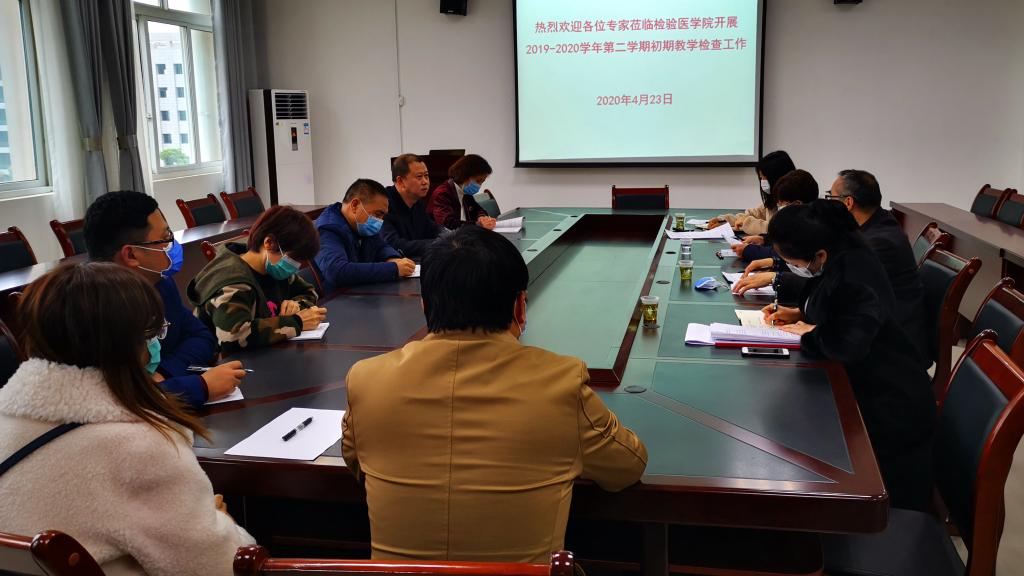 按照公司教务处《2019~2020学年第二学期开学前(初期)教学检查工作通知》要求,为充分做好新冠肺炎疫情防控期间各项教学工作,确保开学后线上线下授课、实验教学、毕业论文答辩等教学活动顺利开展,388vip太阳集团于2020年4月22日开展教学自查工作。4月23日下午16:00,公司教学检查组到388vip太阳集团进行初期教学检查。会议由教务处处长葛正龙教授主持,钱民章教授、饶曦老师、李婧睿老师作为检查组成员出席会议,388vip太阳集团领导班子、各教研室主任、秘书、课程组长及新蒲全体上班人员参加教学检查工作。