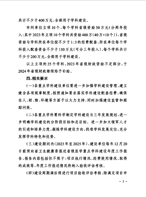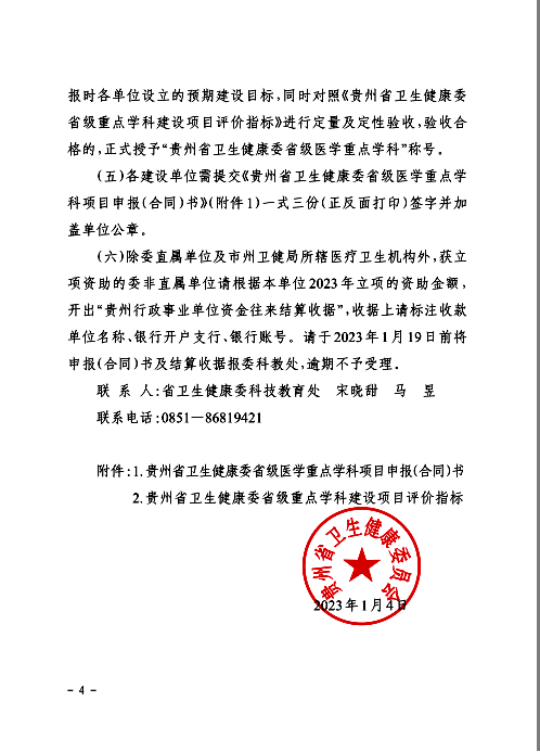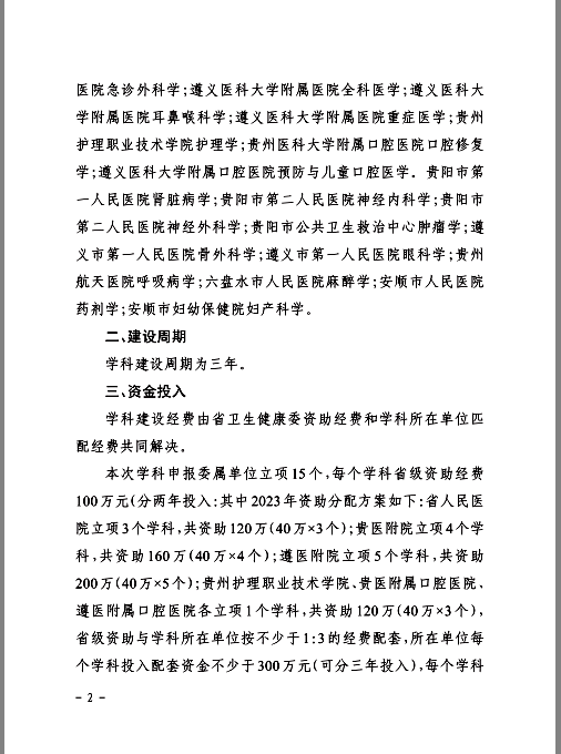 根据《贵州省整体提升卫生健康水平攻坚行动计划(2021—2030年)》文件精神,近年来,省卫健委坚持把保障人民健康放在优先发展的战略地位,以高质量发展为统揽,以提高人均预期寿命为目标,以改革创新为动力,强化组织领导、政策保障、督查考核与资金保障。医公司党委、行政坚持“错层布局、分层建设、抓优扶强、突出特色”的学科发展思路,积极贯彻落实公立医院高质量发展要求,注重团队建设的顶层设计和精准决策,积极开展重点学科建立和培育工作。以教育部第五轮学科评估、国内一流团队建设、三级公立医院绩效考核、中国医院科技量值榜(STEM)、中国医院排行榜(复旦版)、博士学位点申报等专项工作为抓手,以《388vip太阳集团附属医院临床医学国内一流团队建设方案》、《388vip太阳集团附属医院临床学科分类遴选管理办法》及“普通学科骨干培养计划”等制度办法为保障,全力打造了一批品牌学科、优势学科、特色学科,铸造了医院特色学科品牌和专科特色服务品牌,实现了人才、学科、管理、服务等全面提升,医疗质量和服务水平不断提高,为广大群众提供了优质、安全、高效的医疗服务。与此同时,医院各学科努力谋发展,以高质量医疗服务为核心,以高难度医疗技术为特色、高水平科学研究为支撑,合力推动医院综合实力的提升。