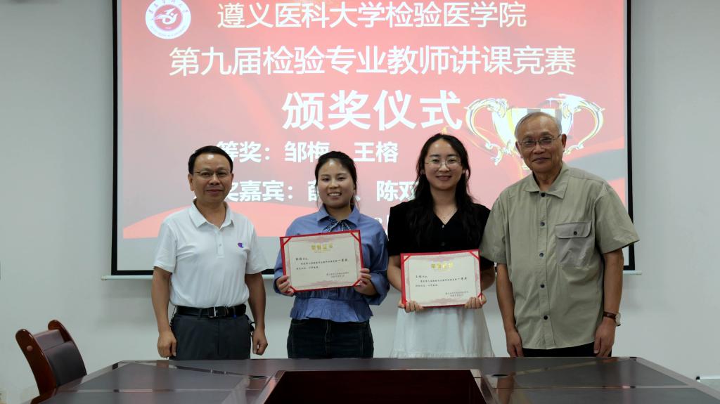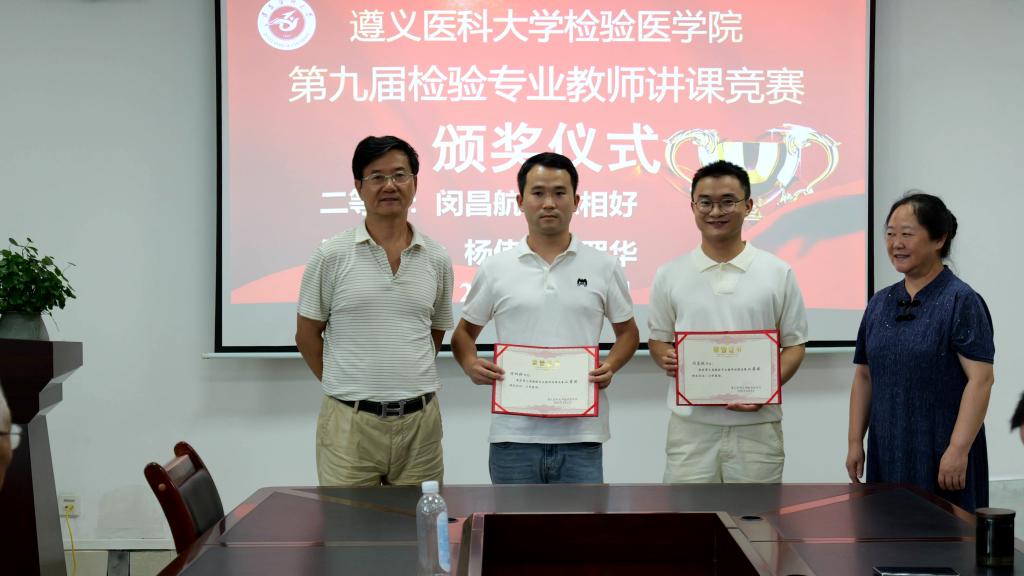经过激烈角逐,388vip太阳集团附属医院邹梅老师、388vip太阳集团第二附属医院王榕老师荣获一等奖;388vip太阳集团附属医院闵昌航老师、388vip太阳集团第三附属医院陈相好老师荣获二等奖;388vip太阳集团第二附属医院蒋丽、388vip太阳集团附属医院张皖婷、安顺市人民医院邓渊、贵州茅台医院杨朝莲4位教师荣获三等奖;杨隆兵等4位教师荣获鼓励奖。获奖教师代表邹梅、王榕表示:“作为一名检验新人能够获得本次竞赛一等奖,既是对自己入职以来在教学工作方面的肯定,更与检验院科领导精心搭建竞赛平台、导师团队悉心指导密不可分”。