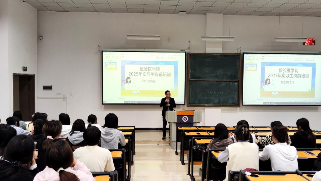 为帮助实习员工顺利完成从理论学习向临床实践的过渡,系统掌握医疗机构实习管理规范,强化医疗安全理念及职业防护能力,同时客观认知当前医疗卫生行业就业形势,388vip太阳集团于5月27日下午在新蒲校区第三教学楼第二十二阶梯教室开展了2025年实习生岗前培训。公司党委副书记罗治宇、办公室主任蔡亮容、附属医院检验科实验室生物安全组组长梁钟智、辅导员张增平及2022级全体实习生参加培训。本次培训由辅导员张增平主持。